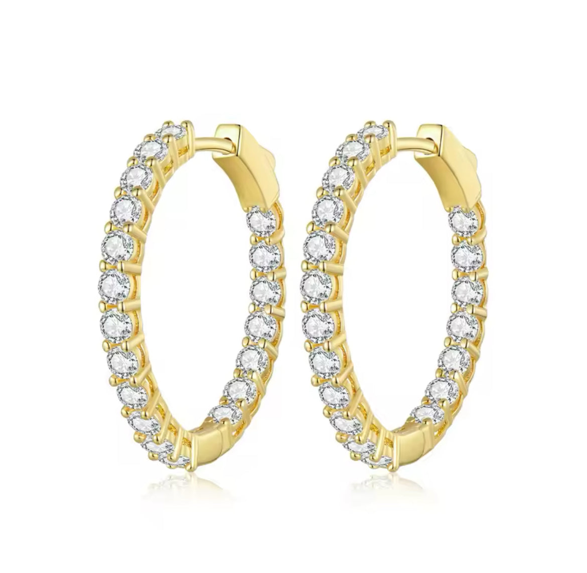 Par de atracadas. Hechas de cobre con circonitas. 3 cm de diámetro. Color dorado.