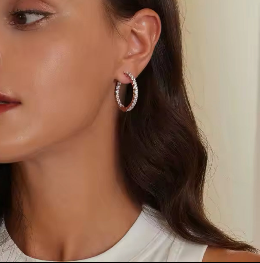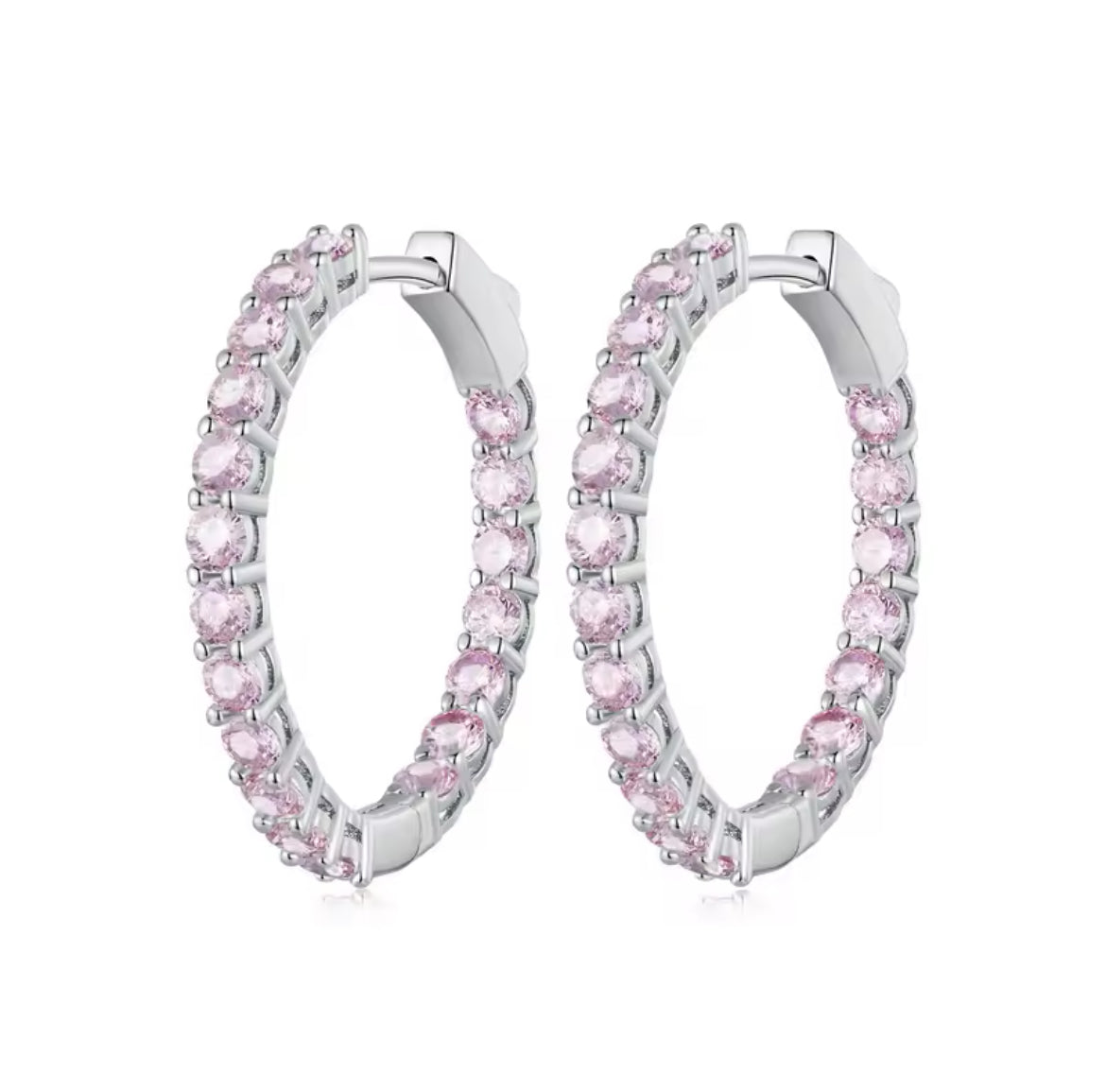 Par de atracadas. Hechas de cobre con circonitas rosas. 3 cm de diámetro. Color plateadas.