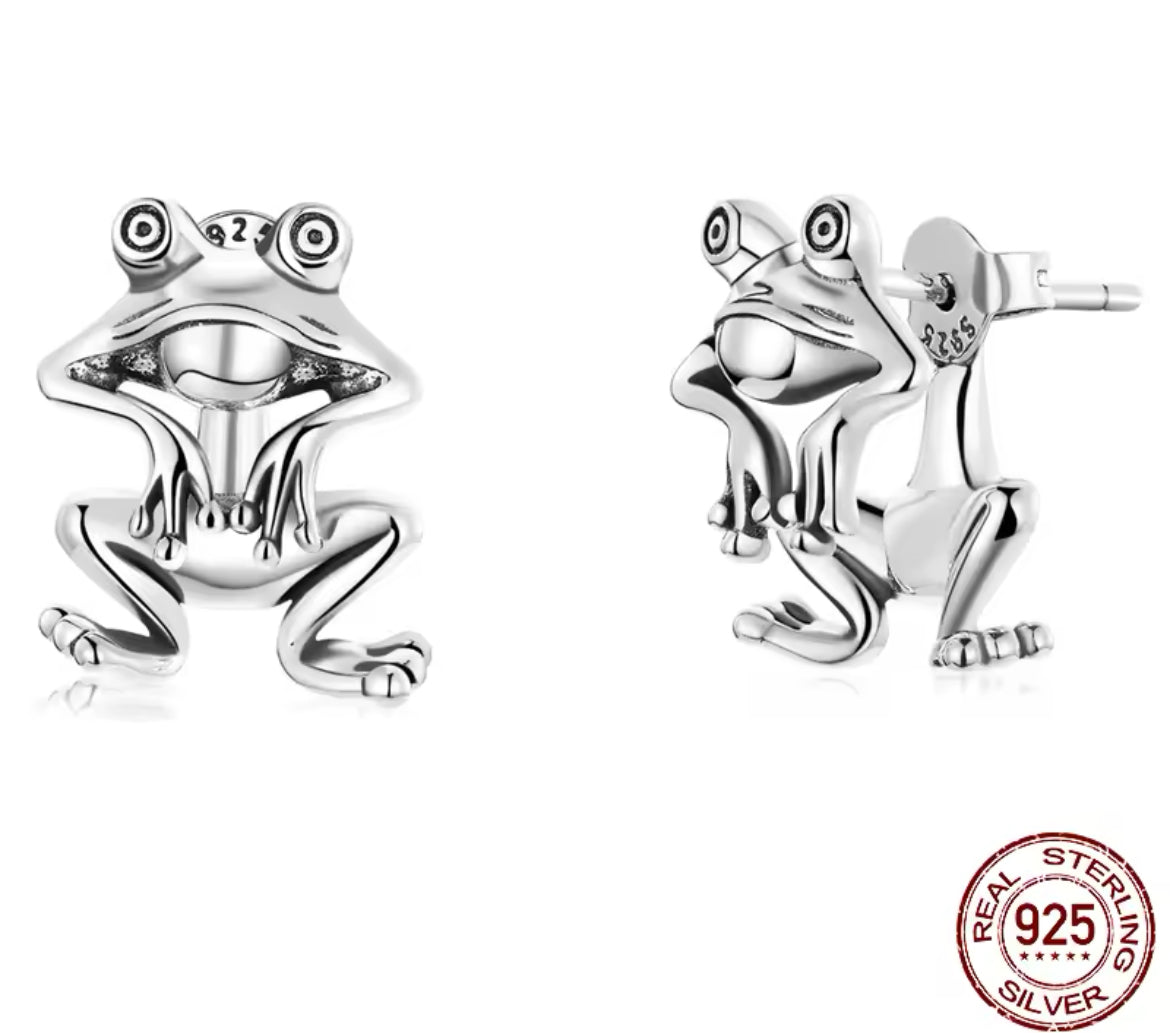 Ppendientes de plata de ley 925 con forma de rana para mujer.