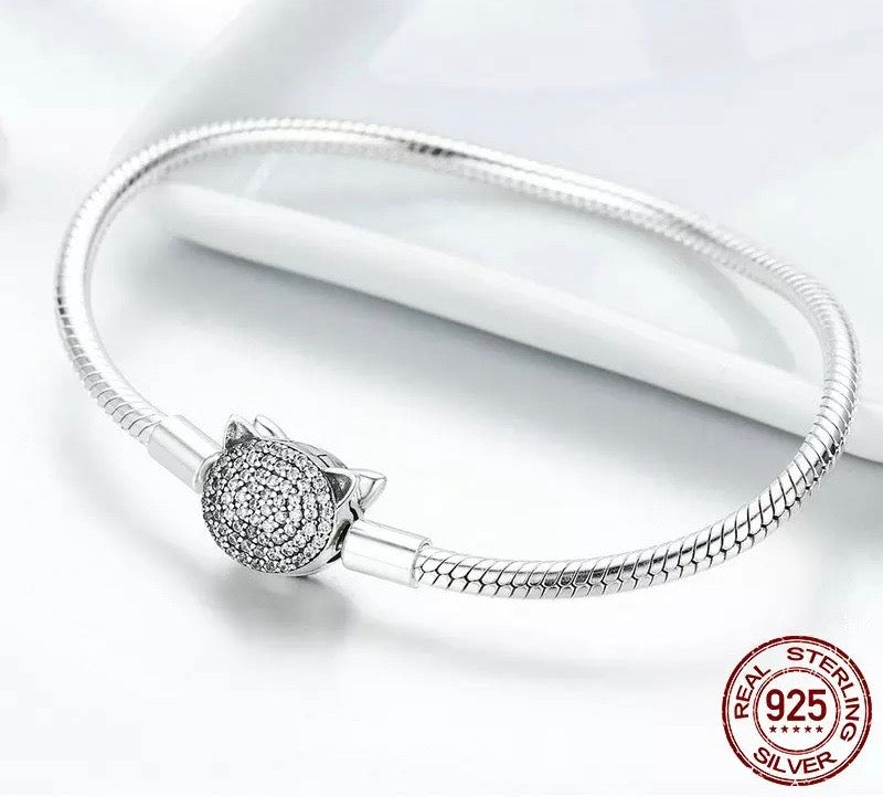Brazalete 100% plata Italiana .925, broche de gato con zirconias