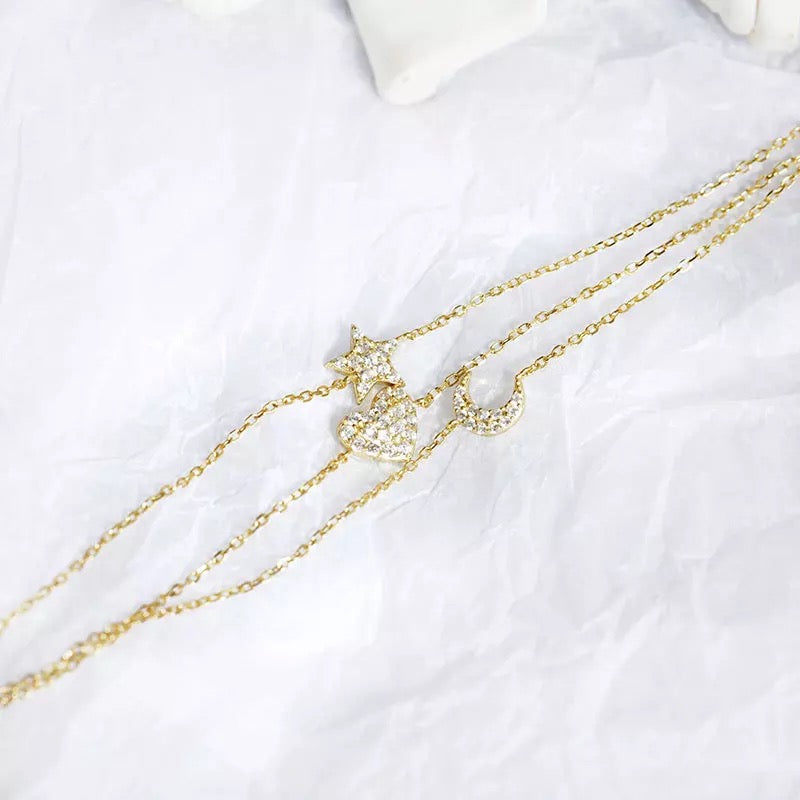 Pulsera dorada triple corazón, luna y estrella