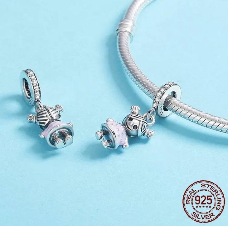 00 % plata Italiana .925 con zirconias, lo puedes utilizar como charm en tu brazalete o como dije en tu collar