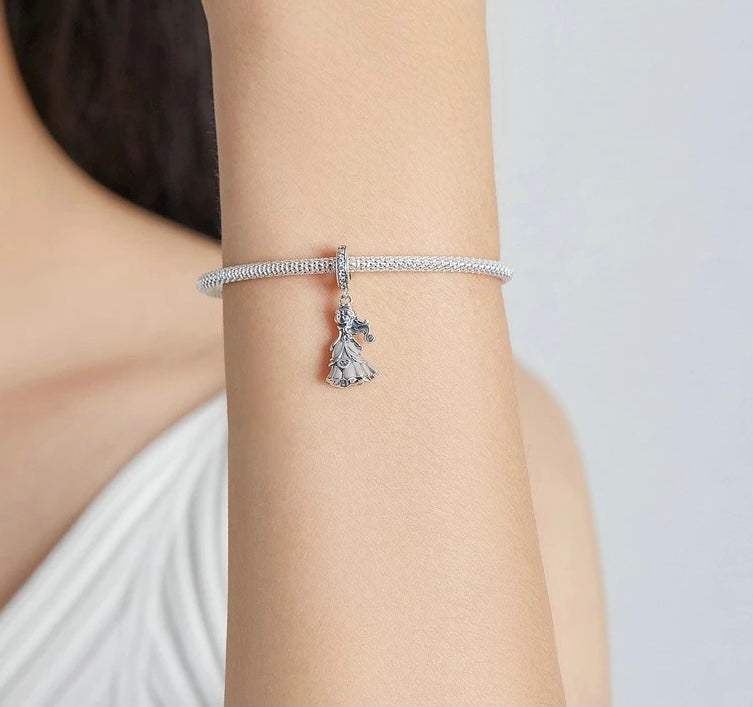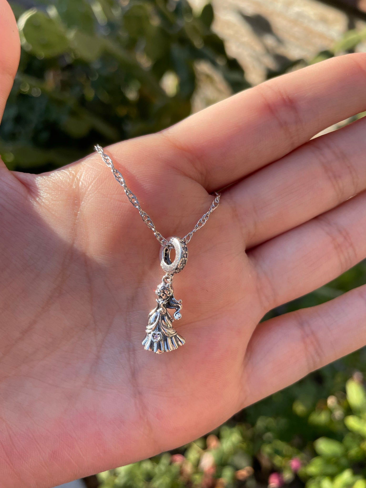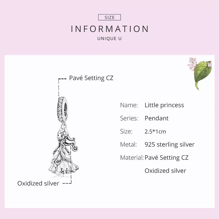 Dije en forma de princesa en plata .925. La cadena y el brazalete se venden por separado.